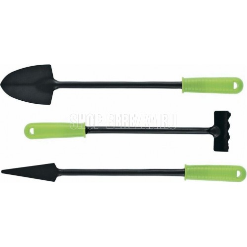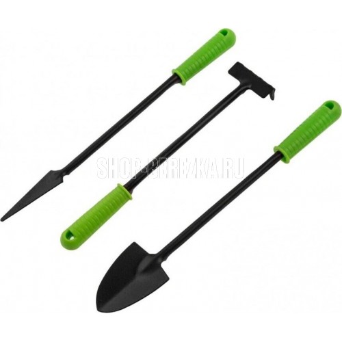 Набор инструмента предназначен для работ по уходу за комнатными растениями и цветами. В состав набора входят: Лопатка 38х230 мм Грабли четырехзубые 38х190 мм Пика посадочная 230 мм Особенности Инструмент изготовлен из конструкционной стали и покрыт порошковой эмалью Снабжен пластиковой рукояткой Преимущества Надежный, долговечный инструмент Не подвержен коррозии Комплектация Лопатка - 1 шт. Грабли четырехзубые - 1 шт. Пика посадочная - 1 шт.