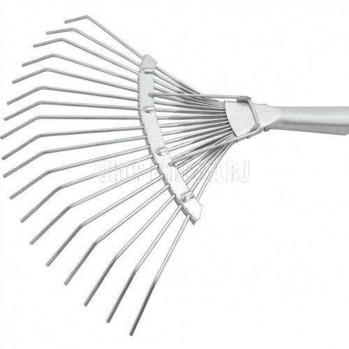 Грабли веерные стальные, 360х1500 мм, 18 круглых зубьев, деревянный черенок 61781 Количество зубьев: 18 Сечение зубьев: круглый зуб Длина: 1500 мм Материал рабочей части: рессорно-пружинная сталь Материал черенка: древесина твердых пород Ширина рабочей части: 360 мм