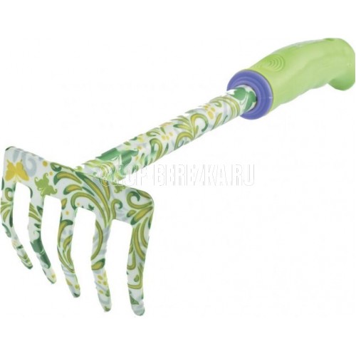 PALISAD Грабли 5-зубые, 85х310 мм, стальные, пластиковая рукоятка, FLOWER GREEN 62039 Серия: Flower green Материал рабочей части: среднеуглеродистая сталь Длина: 310 мм Ширина рабочей части: 85 мм Покрытие рабочей части: иммерсионная пленка Цвет рабочей части: цветочный принт