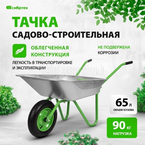 СИБРТЕХ Тачка садовая одноколесная облегченная, объем 65 л 689615