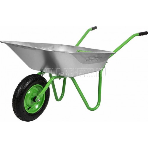 Максимальная нагрузка 90 кг. Объем корыта 65 л. Толщина корыта 0,5 мм. Толщина рамы 1,0 мм. Материал корыта сталь оцинкованная. Материал рамы сталь окрашеная. Диаметр рамы 25 мм. Количество колес 1. Тип колеса пневматическое. Диаметр колеса 345 мм.