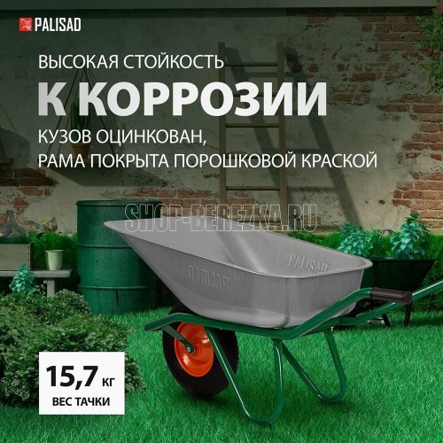 PALISAD Тачка садово-строительная, усиленная, грузоподъемность 200 кг, объем 90л 689183