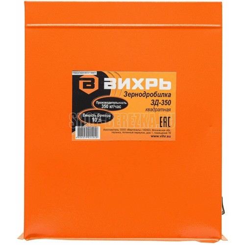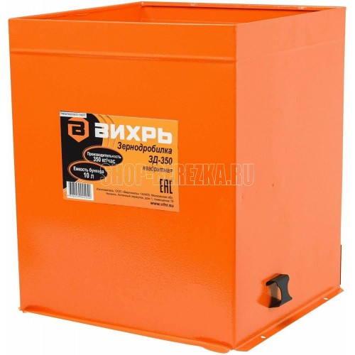 Тип дробилка Мощность 1.35 кВт Напряжение питания 220/240В Максимальная скорость вращения 12000 об/мин Объем загрузочного отсека 10 л Глубина 28 см Ширина 28 см Высота 31 см Вес 5.9 кг Дополнительная информация производительность 350 кг/час Зернодробилка ВИХРЬ ЗД-350 предназначена для переработки всех видов сухого фуражного зерна, включая масленичные культуры и другой подобной сельскохпродукции при подготовке кормов для животных и птиц. В данной модели ёмкость бункера составляет 10 литров, производительность 350 кг/час, продолжительность работы не более 6 часов, частота вращения ножа 12000 оборотов в минуту. Тип электродвигателя: однофазный коллекторный. Первый класс электробезопасности. Принцип работы зернодробилки ВИХРЬ основан на измельчении зерна ножом и пробивании его через сито. Зернодробилка состоит из трех основных частей: загрузочная камера, моторный отсек и камера измельчения.