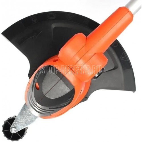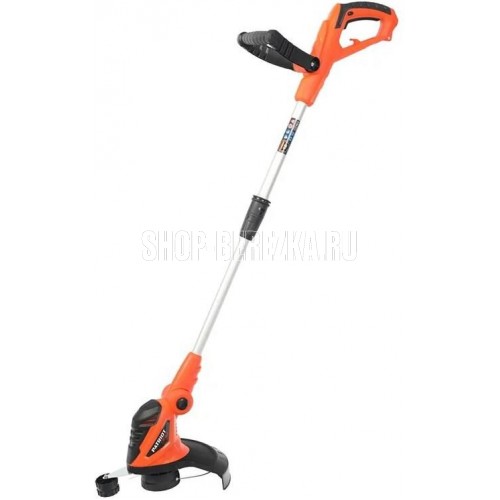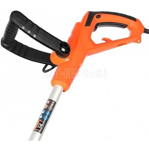 Ширина скашивания, см 28. Частота вращения, об/мин 10000. Режущий элемент леска. Диаметр режущей лески, мм 1,2-1,4. Мощность двигателя, кВт 0,5. Тип двигателя электрический. Тип рукоятки D-образная. Тип штанги регулируемая. Расположение двигателя нижнее. Термозащита Да. Вес, кг 3.