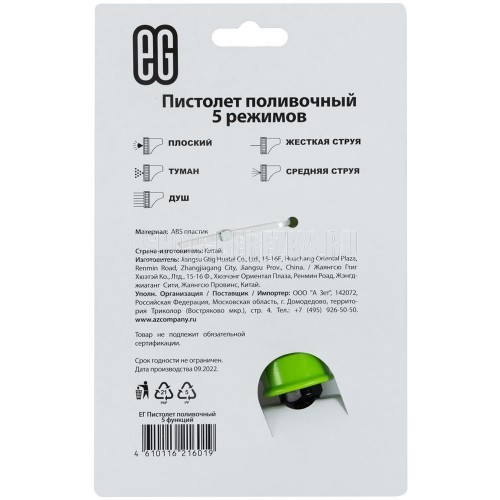 ЕГ (18766) Пистолет поливочный 5 функций зеленый