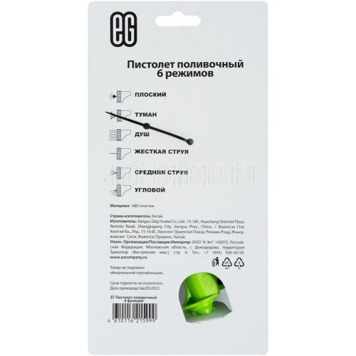 ЕГ (18767) Пистолет поливочный 6 функций зеленый