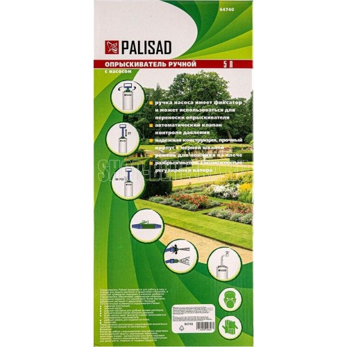 PALISAD Опрыскиватель 5 л, ручной, с насосом, шлангом, разбрызгивателем 64740