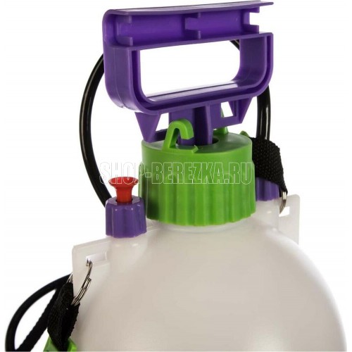 Используется в саду и огороде для защиты растений от вредителей и болезней, а также при проведении подкормок и внесении удобрений. Ручной опрыскиватель 5 литров. Конструкция имеет прочную колбу с мерной шкалой, ремень для ношения на плече во время выполнения работы, насос для создания давления, ручка которого имеет фиксатор и может использоваться для переноски опрыскивателя, автоматический клапан контроля давления, брандспойт. Распыляющая форсунка с возможностью регулировки напора. Материал прочный АБС-пластик. Максимальное давление 2.5 атм.