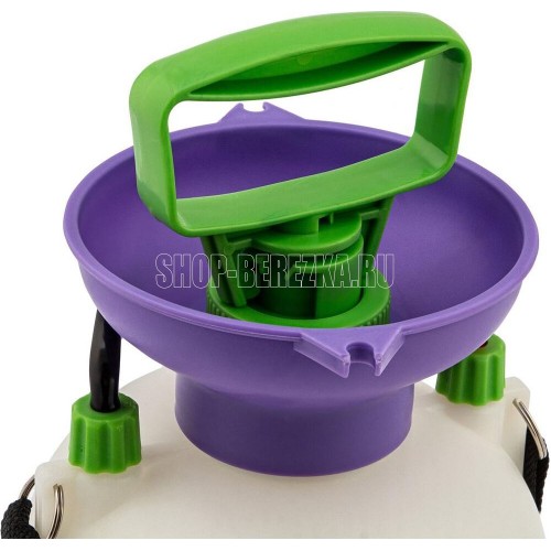 Опрыскиватель предназначен для обработки пестицидами, микрополива растений и внесения жидких удобрений в почву. Конструкция дна придает опрыскивателю устойчивость. Автоматический клапан снижает излишнее давление внутри бачка. Ручка опрыскивателя оснащена фиксатором для непрерывного полива. Широкая горловина обеспечивает быстрое и точное наполнение опрыскивателя. Преимущества: Горловина. Помповый насос. Шланг. Разбрызгиватель. Ремень для ношения на плече. Регулировка распыления. Мерная шкала.