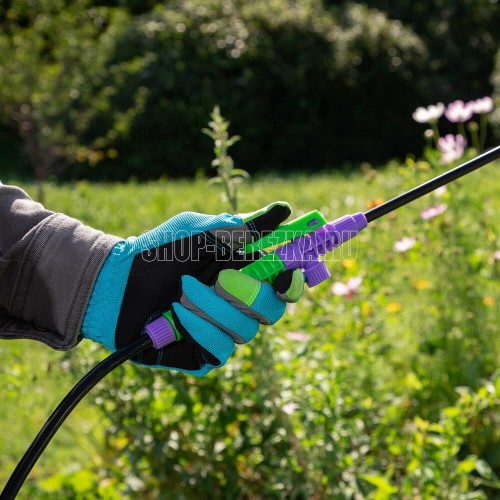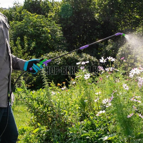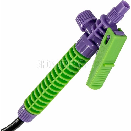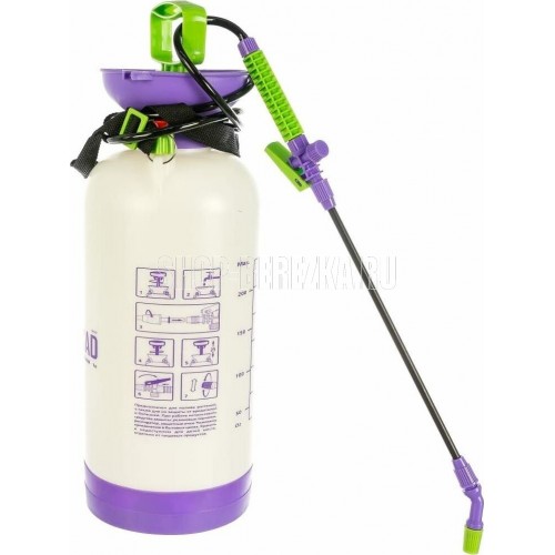 Опрыскиватель предназначен для обработки пестицидами, микрополива растений и внесения жидких удобрений в почву. Конструкция дна придает опрыскивателю устойчивость. Автоматический клапан снижает излишнее давление внутри бачка. Ручка опрыскивателя оснащена фиксатором для непрерывного полива. Широкая горловина обеспечивает быстрое и точное наполнение опрыскивателя. Преимущества: Горловина. Помповый насос. Шланг. Разбрызгиватель. Ремень для ношения на плече. Регулировка распыления. Мерная шкала.