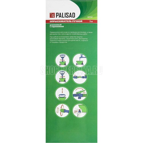 PALISAD Опрыскиватель 7 л, ручной, усиленный, с горловиной, насосом, шлангом, разбрызгивателем 64747