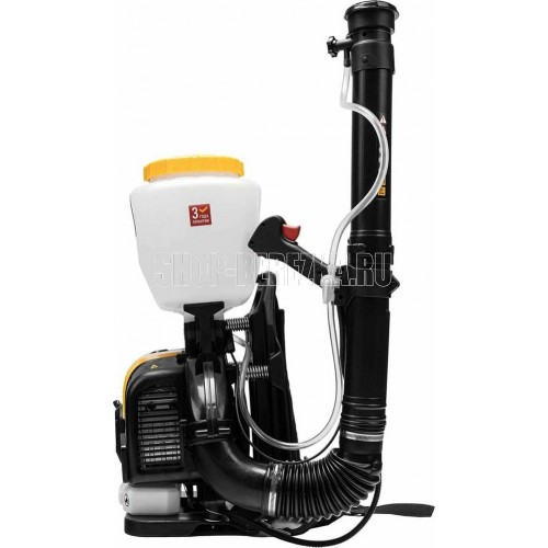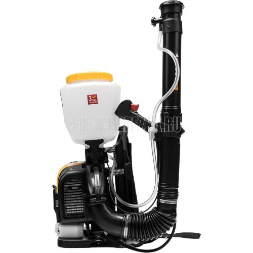 Бензиновый опрыскиватель Denzel GS-63-PRO 65302 с двигателем объемом 63 см3 и баком на 25 л предназначен для распыления жидких, порошковых и гранулированных веществ. Используется для ухода за растениями: обработки от насекомых и вредителей, внесения подкормки, профилактики и лечения заболеваний. Двигатель мощностью 3,6 л.с. обеспечивает дальность распыления до 20 м, поэтому опрыскиватель подходит для обработки участков большой площади. Также он может работать в режиме воздуходувки, позволяя убирать с дорожек опавшую листву и свежевыпавший снег.ПреимуществаЭффективность специальные регуляторы позволяют настраивать напор подачи жидкости и концентрацию порошкового вещества в потоке.Уверенный старт ручной стартер и праймер подкачки топлива позволяют быстро запустить двигатель даже после долгого простоя.Настройка дальности распыления функция круиз-контроль позволяет регулировать обороты двигателя.Регулировка формы факела в комплект поставки входят дополнительные решетки.