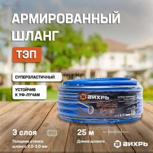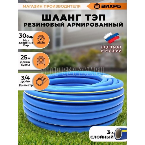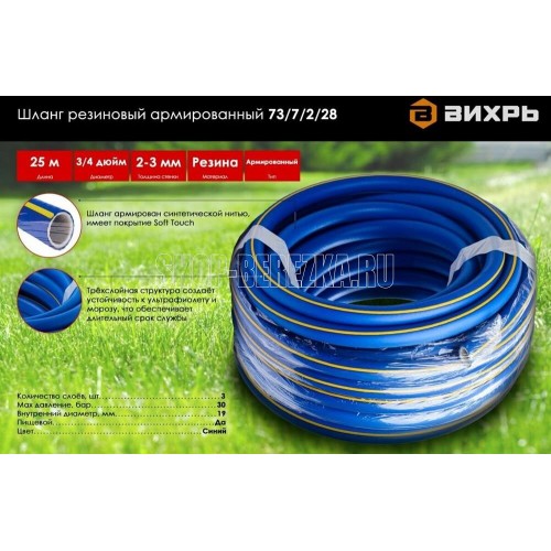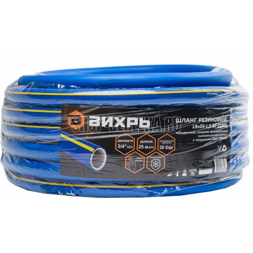 ВИХРЬ 73/7/2/28 Шланг резиновый армированный, 19х25-1,0 - ВГ., бухта 25 м (синий с жёлтой полоской) ТЭП