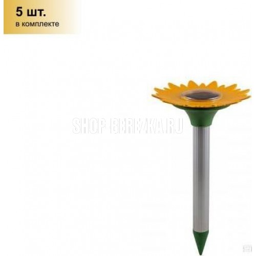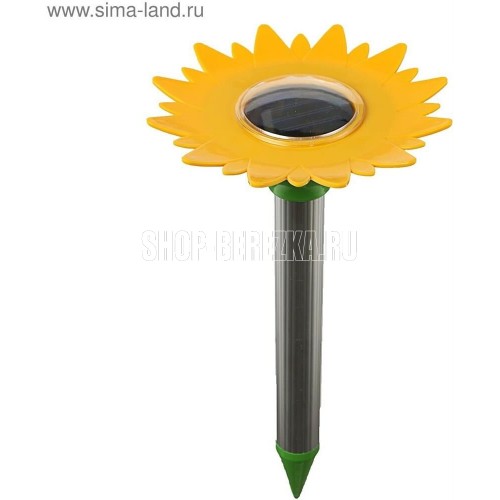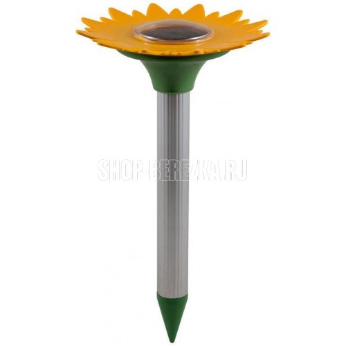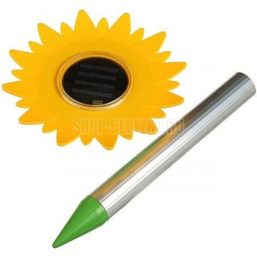 Кротоотпугиватель REP-4S "Подсолнух". Прибор создает периодические колебания в почве, что воспринимается вредителями, как сигнал опасности и отпугивает их. Материал: пластик, металл, алюминий. Размеры: 31* 17см. Размер солнечной панели: 6*6 см. Радиус действия 400-600м3. Преимущества: - отсутствие затрат на электроэнергию (заряжается от солнечной энергии), - легко устанавливается, - работает круглосуточно, - в комплект входит аккумуляторная батарея. Эффективен против: КРОТОВ, КРЫС, ЗЕМЛЕРОЕК, ПОЛЕВОК.