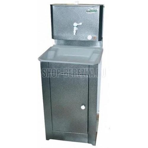 Бак - черный металл, Объем бака - 17 л, раковина - пластик. Сталь, тумба - черный металл Нержавеющая раковина 50 х 40 см. Тумба поставляется в разобранном виде в коробке размером 80 х 54 х 20 см, вес 11,5 кг. Габаритные размеры в собранном виде, мм 1280Х500х460 Умывальник дачный выполнен из высококачественной стали 0,7 мм, окрашен крепкой краской различных цветов: серебро, белый, медь, белое золото, лагуна. Конструкция умывальника Чистюля составная: включает в себя тумбу, которая аккуратно скрывает способ слива воды и позволяет осуществлять водоотвод в канализацию или отдельную емкость и бак с пластиковым краном.