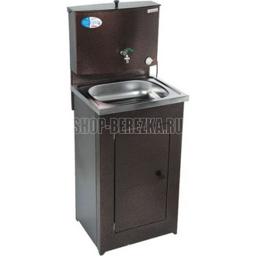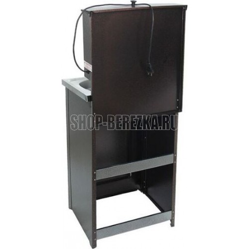 Бак - оцинкованная сталь, Объем бака - 17 л, раковина - нерж. сталь, тумба - черный металл Мощность нагрева - 1.25 кВт, Время нагрева до 60 град. - 30 мин., Номинальное напряжение - 220 В Бак имеет удобное устройство - пробку для слива воды. Плавная регулировка нагрева до 60 градусов. Размер умывальника в сборе: ширина – 50 см, глубина - 43 см. Нержавеющая раковина 50 х 40 см. Тумба поставляется в разобранном виде в коробке размером 80 х 54 х 20 см, вес 12 кг. Преимущества умывальника «Акватекс» перед аналогичными моделями других производителей: Гальваническое цинковое покрытие бака (новая технология); Продукция сертифицирована; Металлический шаровый кран; Плавная регулировка температуры воды; Усиленная стойка бака; Отсутствие петель (источник появления коррозии); Тумба на ножках (циркуляция воздуха под тумбой сохраняет ЛКП от преждевременной коррозии); Увеличенная дверца тумбы (для удобства выемки отливной тары); Увеличенная высота тумбы;