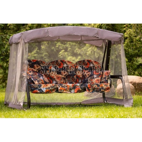 Качели садовые "Мастак Премиум" с 589 Габаритные размеры изделия (длина х ширина х высота), мм: 2376х1440х1775 Габаритные размеры сиденья, спинки и тента (длина х ширина), мм: размеры сиденья: 1790х540 размеры спинки: 1790х540 размер тканевого тента: 2215х1430 Максимальная нагрузка, кг: 320. Каркас: труба стальная O60х1,5мм; полимерное покрытие; полка - 2 шт. фонарь светодиодный – 1шт. Мягкий элемент: ткань мебельная 100% п/э, плотность 380-570г/м2, наполнитель мягкого элемента поролон (толщиной 80 мм), наполнитель подушек - синтепон (полотно полиэфирное объемное). Подушки - 4шт. Тент: тент ткань с водоотталкивающей отделкой 100% п/э плотность 120г/м2, с противомоскитной сеткой (полотно гардинное основовязаное 100% п/э плотность 39г/м2) - фиксация сетки на тканевом тенте осуществляется с помощью горизонтальных и вертикальных застежек – «молний». Регулировка спинки: осуществляется звеньями цепи на требуемый угол наклона, с возможностью фиксации в