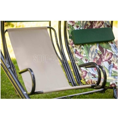 Габаритные размеры изделия (длина х ширина х высота), мм: 1910 х 1427 х 1892. Габаритные размеры сиденья,спинки и тента (длина х ширина), мм: размеры сиденья: 670x510. размеры спинки: 670x815. размер тента: 618х1180. Максимальная нагрузка, кг: 280 (не более 140кг на одно посадочное место). Каркас: труба стальная O51х1,4мм; полимерное покрытие . Мягкий элемент: ткань 40% п/э – 60% хлопок, плотность 220-230г/м2, наполнитель мягкого элемента поролон (толщиной 50 мм), наполнитель подголовника – формовой поролон. Тент: ткань 40% п/э – 60% хлопок, плотность 220-230г/м2. Размеры упаковки, мм: 850х200х1880. Вес изделия: нетто, кг – 47,2.