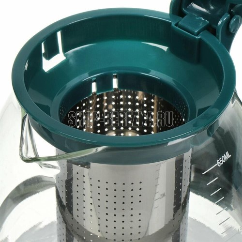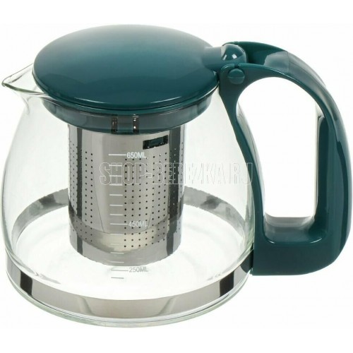 Чайник заварочный Отметки литража Корпус из жаропрочного стекла/крышка/ ручка из пластика Фильтр из нержавеющей стали Объем — 750 мл Толщина стекла — 1,7мм 4~11.5?10-6 — коэффициент линейного расширения Упаковка — пузырчатая пленка/цветная коробка