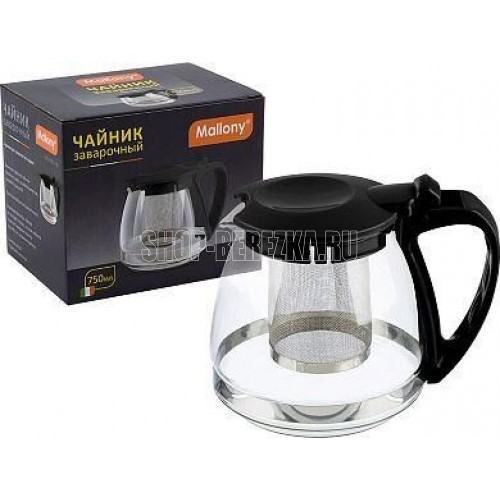 MALLONY Чайник заварочный DECOTTO-750, объем: 750 мл, с пластик ручкой, фильтр из нерж стали, цвет: чёрный (910132)