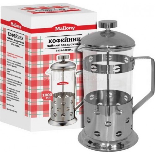 Тип Френч-пресс. Цвет Серебристый. Материал корпуса Металл. Объем 1 л.