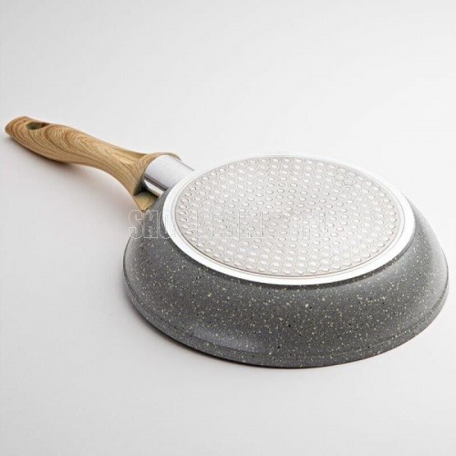 ALPENKOK AK-0043A/26N 26см (6) Параметры Диаметр 26 см Толщина дна 3 мм Описание Сковорода из литого алюминия Высококачественное экологически чистое внутреннее антипригарное покрытие Внешнее высокопрочное термостойкое покрытие Индукционное дно толщиной 3 мм гарантирует прочность и высокую эффективность приготовления Эргономичная ненагревающаяся ручка с противоскользящим покрытием Быстрый нагрев пищи, длительное удержание тепла Подходит для приготовления пищи с малым количеством масла Минимальные потери минеральных веществ, витаминов и вкусовых качеств Может быть использована на всех типах кухонных плит: электрических, газовых, индукционных, стеклокерамических