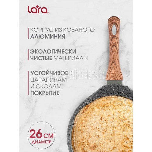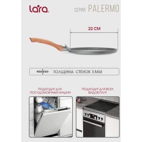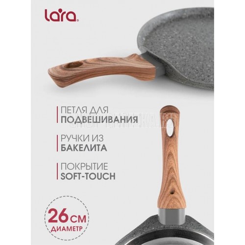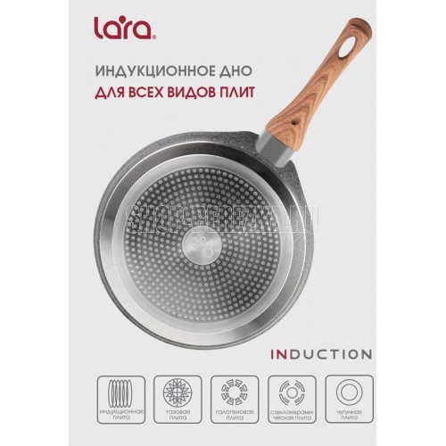 PALERMO 26см, 3-слойное внутреннее гранитное покрытие 2-слойное наружное мраморное покрытие 5-слойное капсулированное индукционное дно Бакелитовые ручки с отделкой под дерево Антипригарное покрытие PFLUON