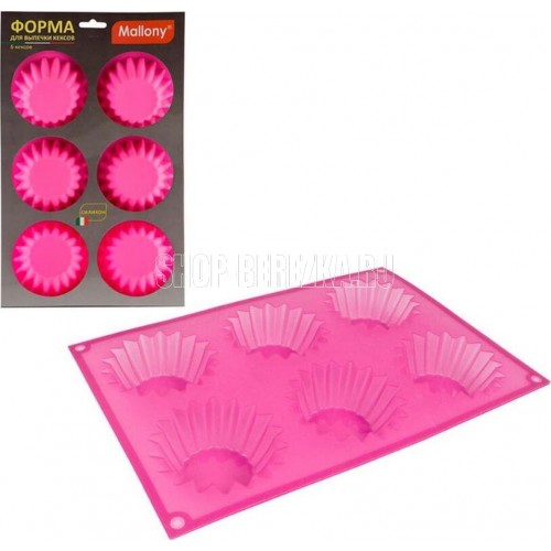 Форма для выпечки 6 кексов Размер: 31*21*4 см Материал: силикон Температура использования от -40°С до +230°С Толщина - 1 мм Упаковка: цветной рукав