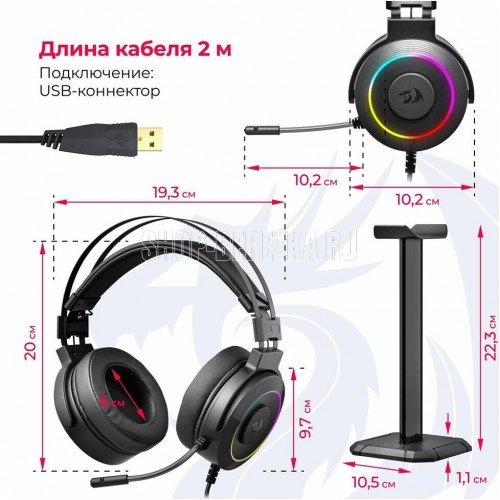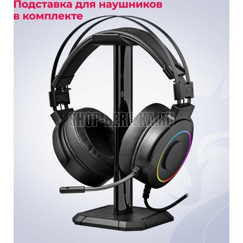 Виртуальный объемный звук 7.1 - Система обработки звука имитирует работу 7 колонок и сабвуфера, расположенных с разных сторон, создавая точную среду объемного звучания и позволяя полностью погрузиться в мир игры Подставка для наушников в комплекте Кнопка выключения микрофона - Просто отключите микрофон, если не хотите, чтобы собеседник или партнеры по игре вас слышали Светодиодная подсветка корпуса наушников - Идеально для киберспорта Регулятор громкости звука - Вам не придется переключаться на управление компьютером, чтобы отрегулировать уровень громкости Микрофон с шумоподавлением - Выведите коммуникацию с партнерами по игре на новый уровень Большие охватывающие амбушюры - Охватывающие амбушюры минимизируют давление на ушную раковину и обеспечивают дополнительную звукоизоляцию Наушники закрытого типа - Наушники не пропускают внешние шумы и обеспечивают максимальную звукоизоляцию. Это позволяет использовать их в шумных условиях, а также в тех случаях, когда необходимо полностью сосредоточиться на игре