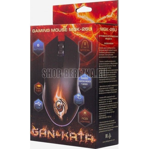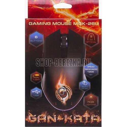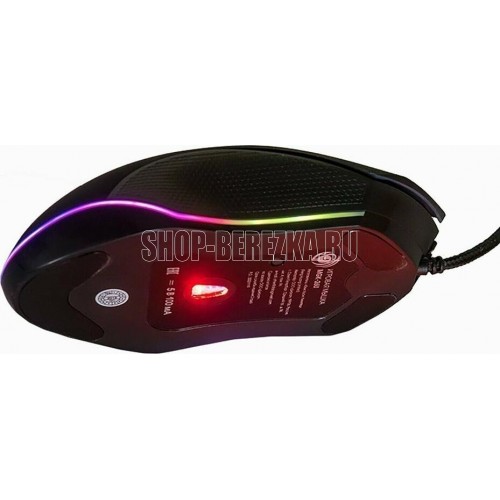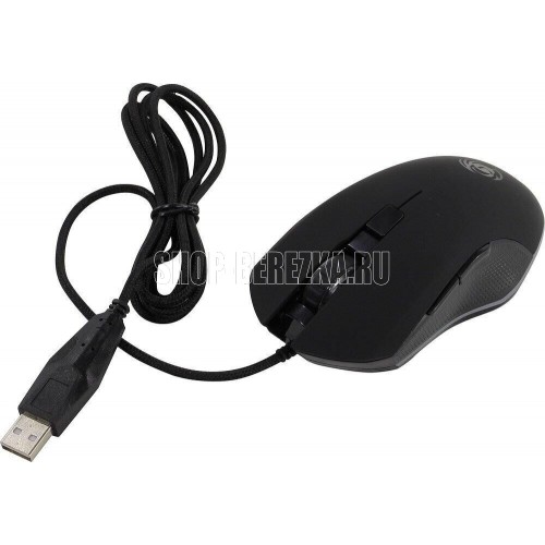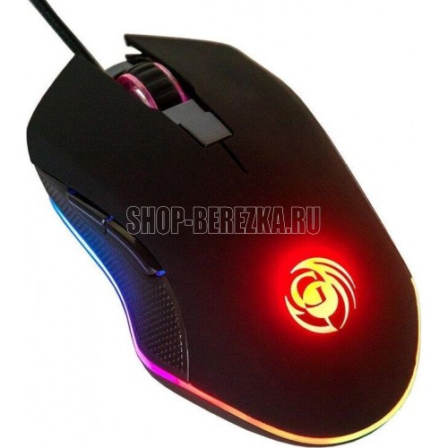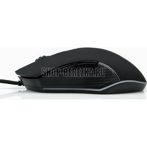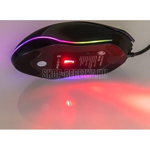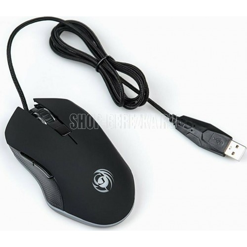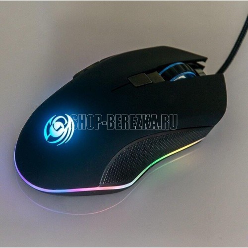 Геймерская мышь, проводная, оптическая, интерфейс USB, оптическая (видимый диапазон), изменяемое разрешение - 800/1200/2400/3200 dpi, количество кнопок - 6, вертикальная прокрутка, тихий клик, красивая подсветка по периметру, материал корпуса - черный пластик, боковины с противоскользящей ячеистой фактурой, верхняя панель с кнопками - пластик софт-тач.