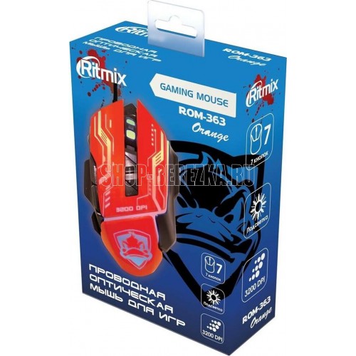 Мышь проводная, оптическая, интерфейс USB, количество кнопок - 7, колесо прокрутки, изменяемое разрешение 1200 / 1800 / 2400 / 3200 dpi, длина кабеля - 1,5 м.