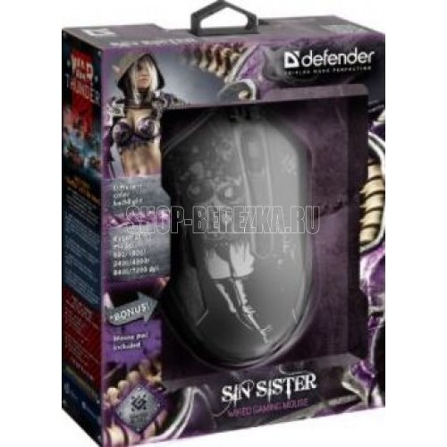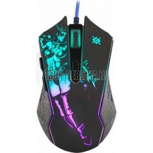 Мышь игровая, проводная, интерфейс подключения USB, тип сенсора - оптический, переливающаяся подсветка, количество кнопок 5 + колесо-кнопка, разрешение изменяемое - 800/1600/2400/4800/6400/7200 dpi, 5 программируемых кнопок, эргономичная форма, длина кабеля 1.5 (±5%) м.