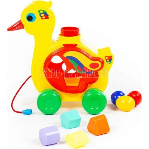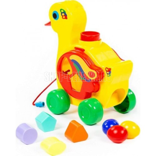 Уточка-несушка имеет яркую расцветку и объединяет в себе функции сортера и каталки. Наличие сортера позволяет ребёнку изучить форму и цвет, решая логическую задачу – подобрать отверстие для каждой фигурки. Возможность катать уточку делает игру еще интереснее, развивая при этом координацию движений малыша. Размер в упаковке 225х135х230 Примерный объем в упаковке 0,065
