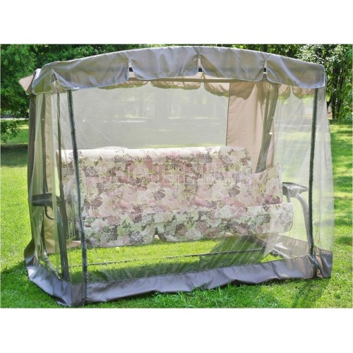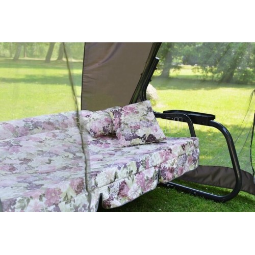 Максимальная нагрузка, кг: 280. Каркас: труба стальная O 51х1,4мм; полимерное покрытие; полка - 2 шт. Мягкий элемент: ткань 40% п/э 60% хлопок, плотность 220-230 г/м2, наполнитель мягкого элемента поролон (толщиной 80 мм). Увеличенная высота спинки сиденья. Наполнитель подголовника – формовой поролон. Подушки – 2шт. (наполнитель – синтепон). Тент: ткань с водоотталкивающей отделкой 100% п/э плотность 125-130г/м2, с противомоскитной сеткой (полотно гардинное основовязаное 100% п/э плотность 39г/м2) - фиксация сетки на тканевом тенте осуществляется с помощью горизонтальных и вертикальных застежек – «молний». Регулировка спинки: осуществляется звеньями цепи на требуемый угол наклона, с возможностью фиксации в разложенном положении.