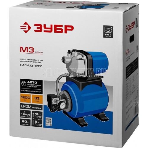 ЗУБР НАС-М3-1200 Станция насосная "МАСТЕР" М3 автоматическая