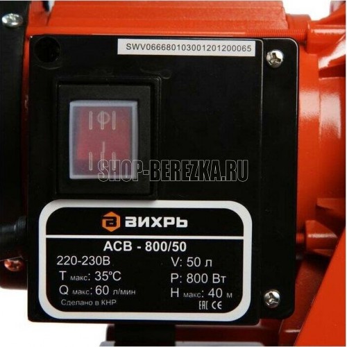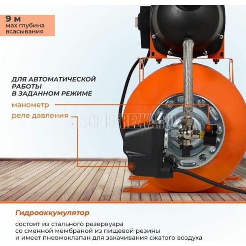 Напряжение питающей сети, В 220-230. Частота питающей сети, ГЦ 50. Мощность, Вт 800. Тип насоса Центробежный. Максимальная высота подъема воды, м 40. Максимальная производительность, л/мин 60. Диаметр входного и выходного отверстий, дюйм 1. Максимальная глубина всасывания, м 9. Материал корпуса насоса Пластик. Емкость гидроаккумулятора, л 50. Допустимая концентрация твердых частиц в перекачиваемой воде, г/м3-150. Гарантия 1 год. Габариты упаковки 0.64х0.6 х0.38 м. Вес, кг 14.5 кг.