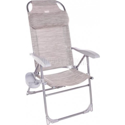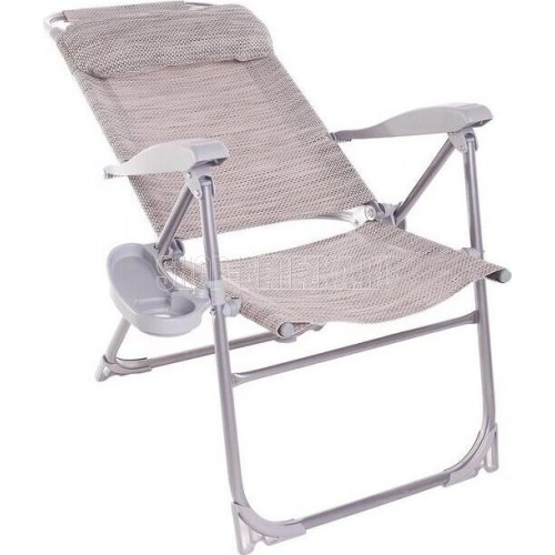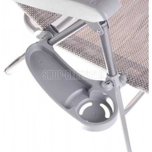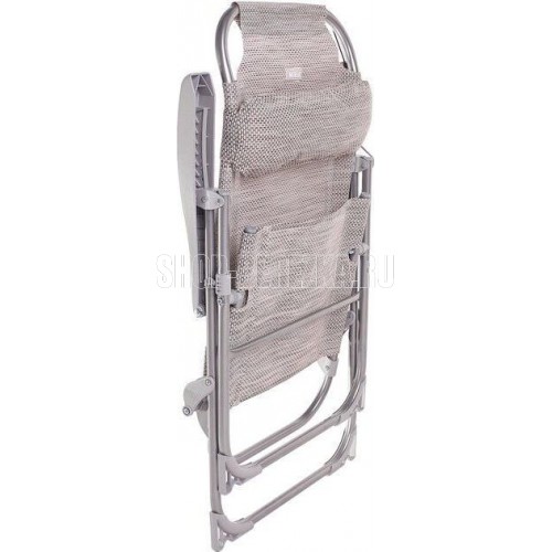 NIKA Кресло-шезлонг с полкой (KШ2/2 муссон) Область применения: для отдыха на открытом воздухе и в помещении Материал: каркас – металлическая труба; чехол – жаккард. Ткань не боится воды, легко чистится моющими средствами и устойчива к загрязнениям Цвет: каркаса – серый, черный; чехол – в ассортименте Преимущества: • 8 положений спинки • съемный подголовник • съемный подстаканник • компактное хранение • допустимая нагрузка 120 кг