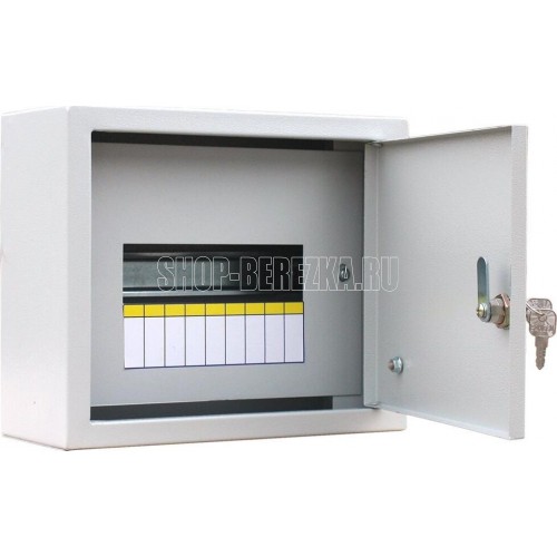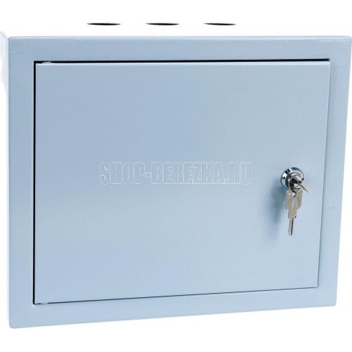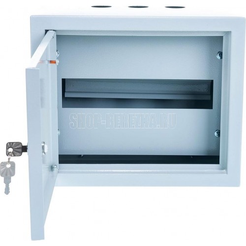 Щит распределительный навесной, 250х300х120мм, замок, 2 ключа, оцинкованная DIN-рейка, оцинкованная лента для крепления шин N и PE, оцинкованная панель для крепления счётчика, пломбировочная коробка вводного автомата, знаки электробезопасности.