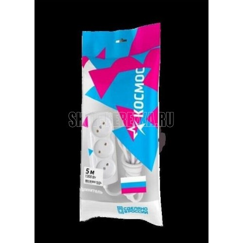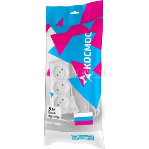 Удлинитель КОСМОС 6А 3 гн ШВВП 2*0,75 (5м) до 1300Вт Россия