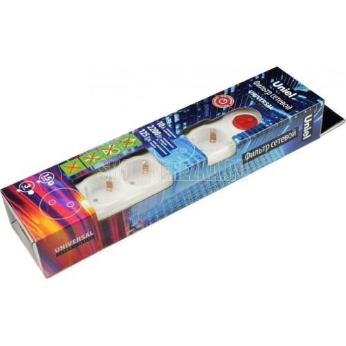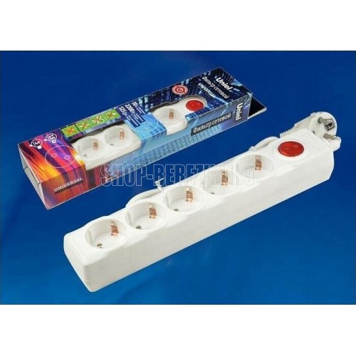 Cетевой фильтр серии Universal, 1,5м (Пвс 3*0,75), 5 гнезд, с/з. 10А. Защита от перенапряжения, короткого замыкания. Группа эффективности - Оборотный товар; Длина кабеля, м - 1,5; Заземление - Да; Защита от перегрузки - Да; Количество гнезд, шт. - 5; Максимальная нагрузка, Вт - 2 200; Материал корпуса (изделия) - пластик негорючий; Минимальная партия - 1; Наличие выключателя - Да; Номинальная сила тока, А - 10; Сечение провода, мм2 - 0,75; Срок гарантии, мес. - 12 месяцев; Страна производства - Китай; Цвет корпуса (изделия) - белый