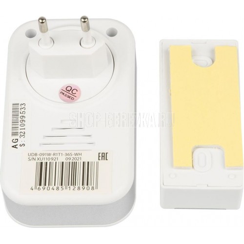 Материал корпуса: Пластик Цвет корпуса: Белый Модель: UDB-091W-R1T1-36S-WH Радиус действия, м: 100 Количество мелодий, шт: 36