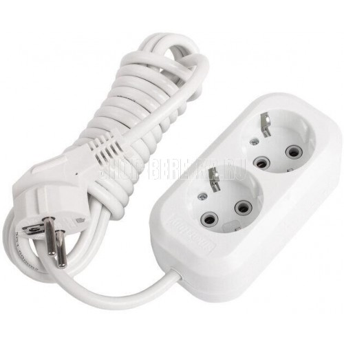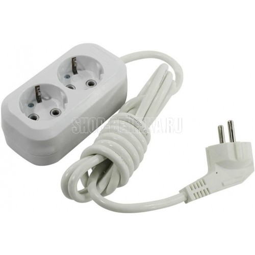 Колодка, количество розеток - 2, номинальное напряжение: 250 В; частота: 50 Гц; номинальный ток: 16 А; материал корпуса: АБС-пластик; климатическое исполнение: УХЛ-3; степень защиты от влаги и пыли: IP-20; Цвет: белый.