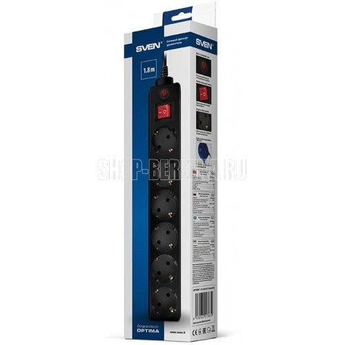 SVEN OPTIMA 3,0 м (6 розеток с защитными шторками, черный, цветная коробка)