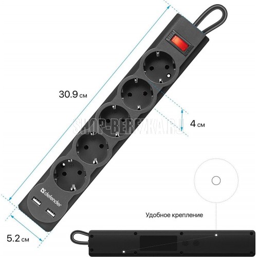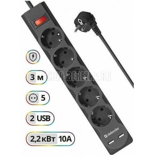 Максимальная рассеиваемая энергия: 220 Дж, Защищаемые цепи: фаза-ноль, Защита от перегрузки и короткого замыкания: автоматический несгораемый предохранитель, встроенный в выключатель, Кол-во розеток: 5 шт.,Розетки с заземлением: 5 шт., Номинальное напряжение/частота: 230 В / 50 Гц, Максимальная суммарная мощность нагрузки: 2200 Вт, Максимальный ток нагрузки: 10 А, Длина: 3.0 м, Напряжение на USB-портах: 5 В, Кол-во USB-портов для зарядки: 2 шт., Максимальный ток USB-порта: 2.1 А, Токовая защита USB-портов, USB-порт для зарядки устройств, Крепление на стену.