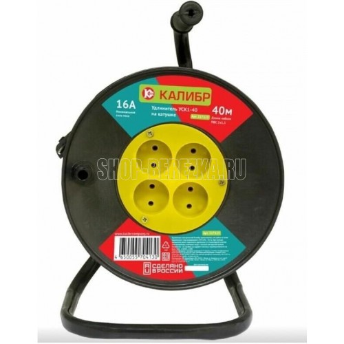 Удлинитель электрический "Калибр УСК1-40" на катушке предназначен для работы в сетях переменного тока напряжением 230±10%, ~50 Гц. При помощи удлинителя легко подключить удаленные от стационарной розетки электроприборы, имеющие шнур с плоской или круглой вилкой. Незаменим на стройке, на садовом участке, в промышленности и в быту. *в зависимости от поставки, внешний вид катушки может отличаться от представленного на фотографии. Сечение 1,5 мм2. Максимальная нагрузка 10 А, 2300 Вт. Длина кабеля 40 м.