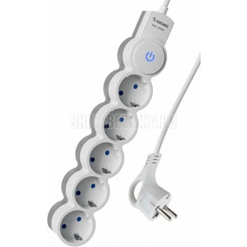 "Бытовой удлинитель белого цвета с кнопкой включения, корпус выполнен из прочного ABS пластика с 5 гнёздами, которые имеют защитные шторки, 10 А, 3м ПВС провод 3х1 мм2, темп. Эксплуатации 1...35 °C, ном. Частота 50 Гц, напряжение 220В, IP20, макс. Мощность 10А 2200 Вт. Китай.