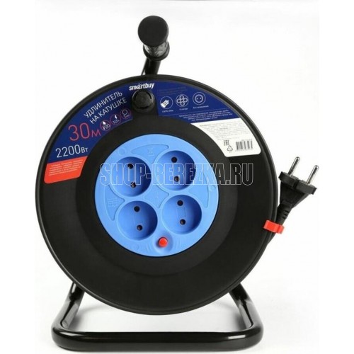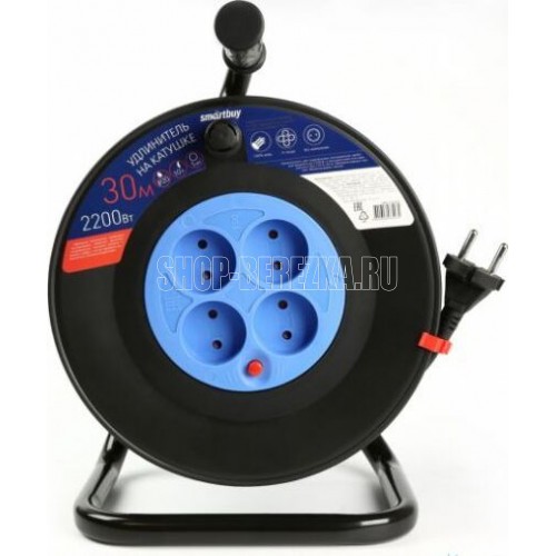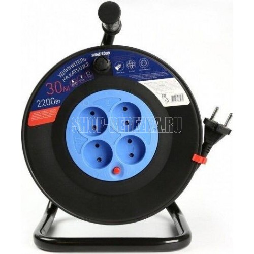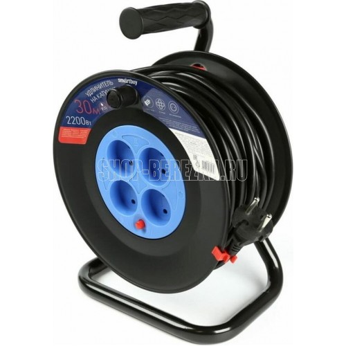 Удлинитель на катушке, количество гнезд - 4 , без заземления, номинальный ток 10 A, сечение, мм2 - 2x1,0 мм2, длина кабеля - 30 м.