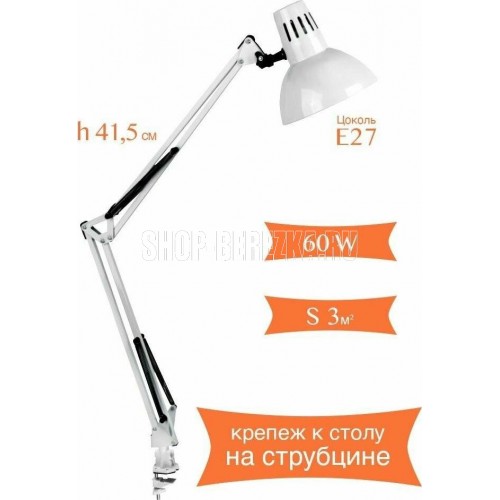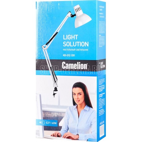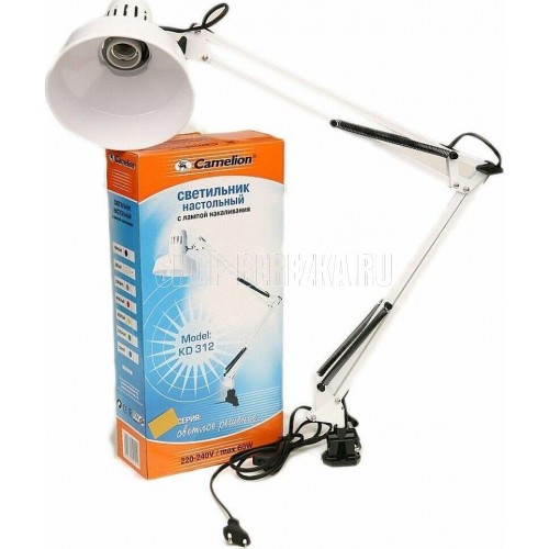 Настольный светильник Camelion KD-312 C01 белый, размер 415х200х90мм, источник света - ЛОН, тип лампы - 60/А/Е27, патрон - E27, мощность 60Вт, ~230 В, 50 Гц.