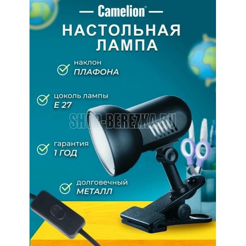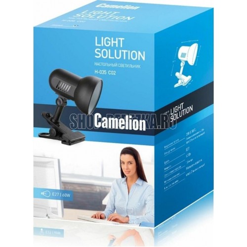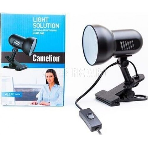 Настольный светильник Camelion H-035 C02 черный, размер 170х150х95мм, источник света - ЛОН, тип лампы - 40/А/Е27, патрон - E27, мощность 40Вт, 230 В, 50 Гц.