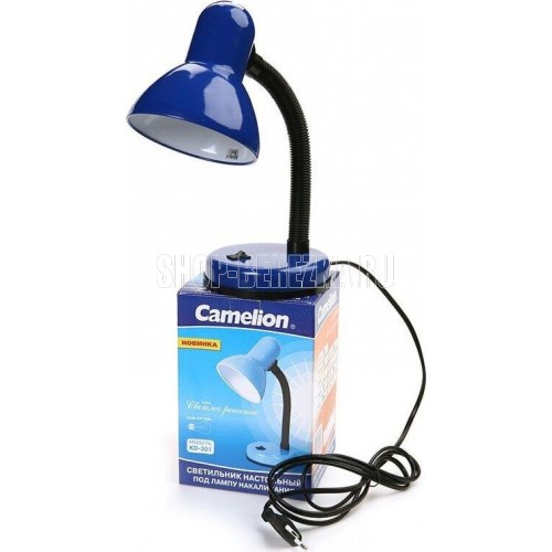 Настольный светильник Camelion KD-301 C06 синий, размер 200х140х130мм, источник света - ЛОН, тип лампы - 40/А/Е27, патрон - E27, мощность 40Вт, ~230 В, 50 Гц.